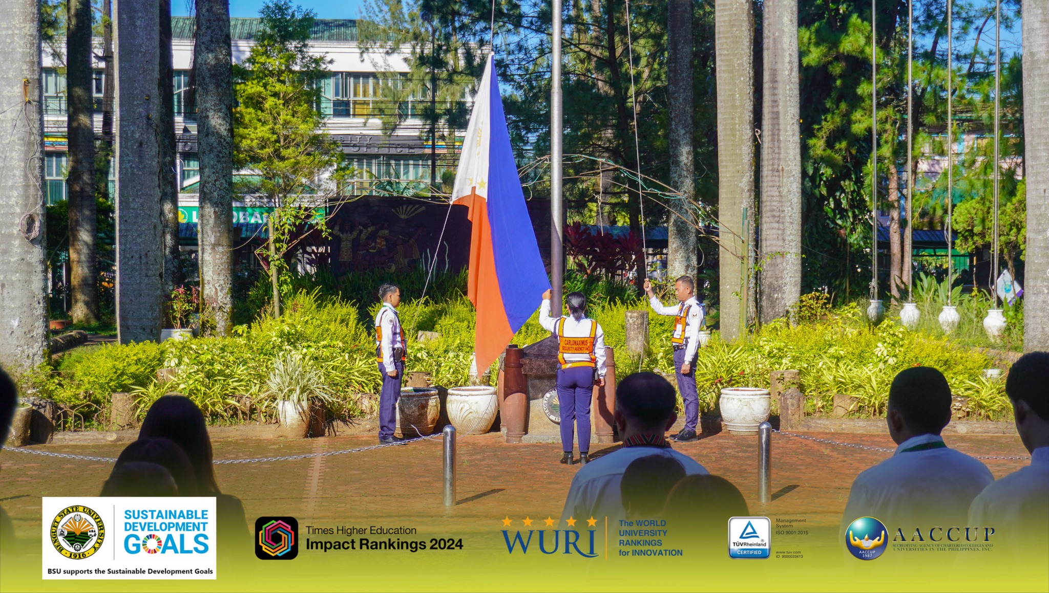 The Flag Raising Ceremony and the short program that follows it usually consisting of announcements, recognition of student and employee achievements, physical exercises, performances and speeches from guests and university officials is a regular activity of BSU that supports and contributes to the Sustainable Development Goals specifically #Goal3, #Goal4, #Goal8, #Goal10, #Goal16, and #Goal17. In essence, the activity serves as a regular platform to reinforce values, disseminate information, and celebrate achievements.