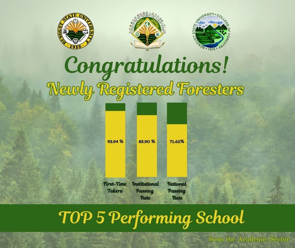 Benguet State University (BSU) is celebrating the exceptional performance of the College of Forestry (CF) in the recent Forester Licensure Examination, which saw 67 new foresters join the professional ranks. The CF recorded an institutional passing rate of 85.90%, significantly outperforming the national passing rate of 71.62%. This outstanding achievement highlights BSU’s commitment to academic continue reading : BSU College of Forestry Surpasses National Rate, Welcomes 67 New Foresters