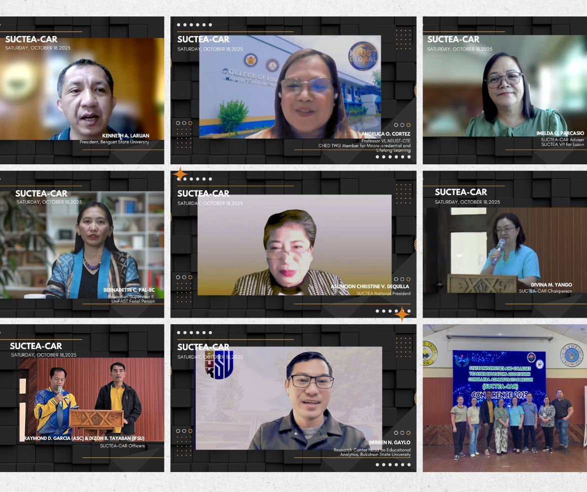Benguet State University–College of Teacher Education (BSU-CTE) hosts the SUCTEA-CAR Conference 2025, a regional gathering of teacher education leaders, teachers, and students that highlighted the themes of Artificial Intelligence (AI) and Micro-credentials in advancing higher education. The conference opened with BSU President Dr. Kenneth A. Laruan welcoming participants and reaffirming the university’s commitment to empowering continue reading : BSU-CTE hosted SUCTEA-CAR Webinar Conference 2025